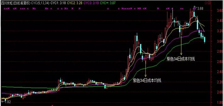 2、洗盘分不同的力度,轻度洗盘不会破13日成本均线,中度洗盘不会破34日成本均线。