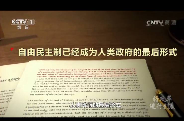 同期声:二十八年前,一篇名为《历史的终结》的文章在西方世界引起广泛关注。文章中,美国政治学者弗朗西斯•福山写到:自由民主制已经成为“人类政府的最后形式”,历史将终结在这里。
