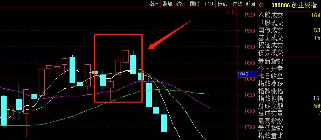 图中的小绿点点明确提示:又见高位小k线,此等小k线是多空剧烈搏杀,最终空方取胜的经典k线形态。