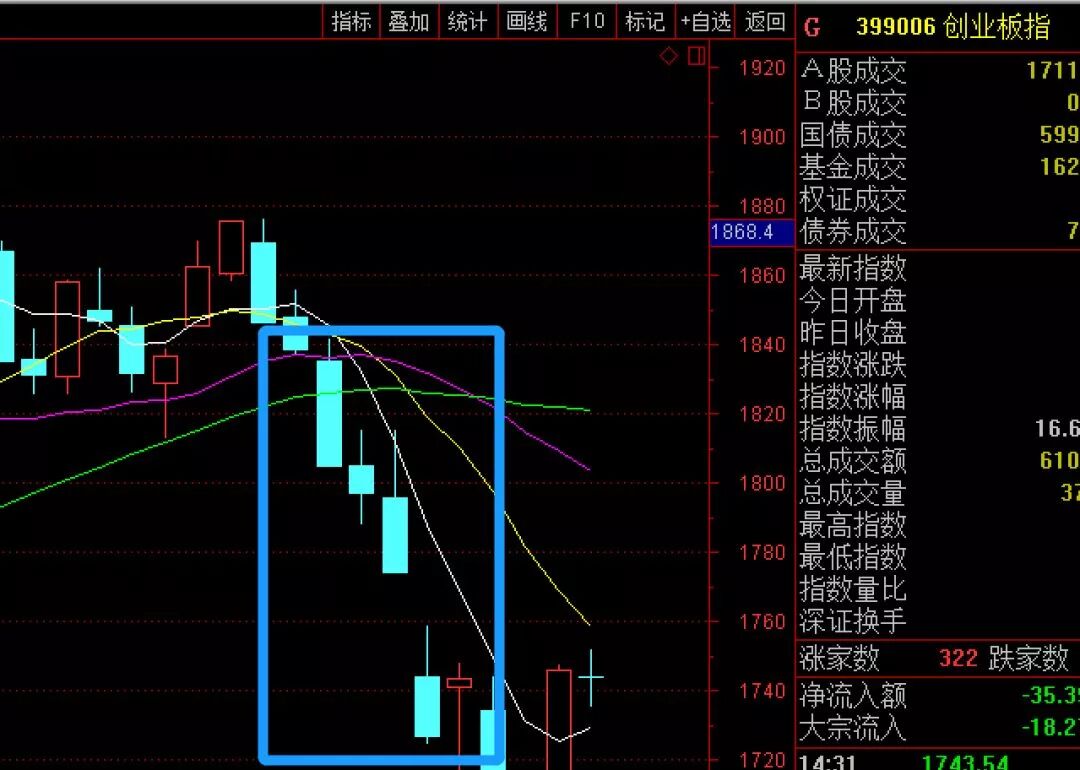 第三天和第四天,创业板累计跌幅1.29+2.67=3.96%