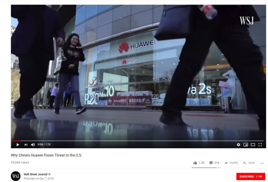 而《华尔街日报》在其节目中也相对客观讲述了美国对华为如此“重视”并视为“威胁”的原因:竞争不过华为。