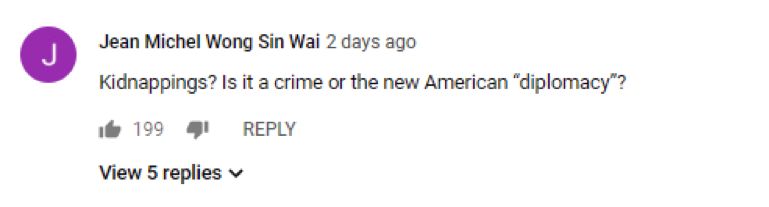实际上,除了耿直哥文章开头给出的那两条评论,《华尔街日报》这段视频下面的评论可以说几乎是一边倒的在谴责美国的,而且大多数人都认为美国是在搞“绑票”:
