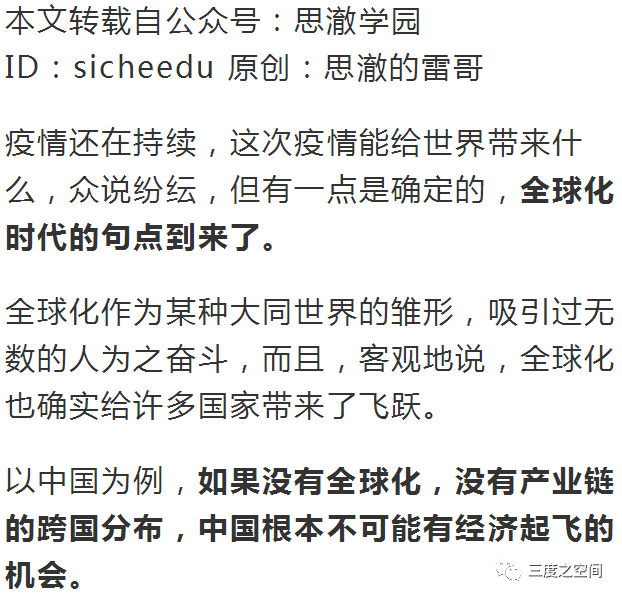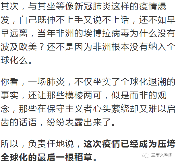 负责任地说,这次疫情已经成为压垮全球化的最后一根稻草