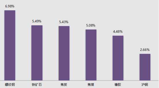 黑色系跌幅最为显著,热卷跌超7%,螺纹钢跌近7%,盘初一度触及跌停,焦煤、焦炭、铁矿石收跌超5%。有色金属整体跌幅在2%左右,铜下跌2.17%。