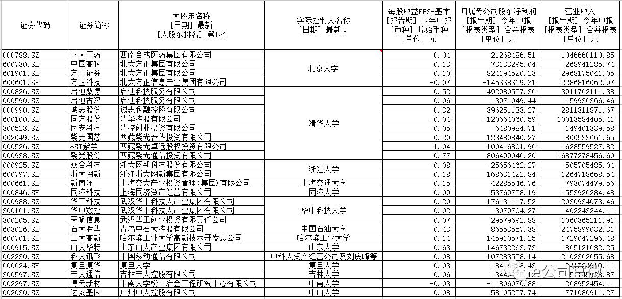 最新的“一流大学建设高校”名单,无疑囊括了目前国内学术和研发的顶尖力量。证券时报·e公司记者盘点发现,目前华中科技大学仅次于北大清华,旗下拥有3家上市公司,浙江大学控制浙大网新,并通过浙大网新控股众合科技。