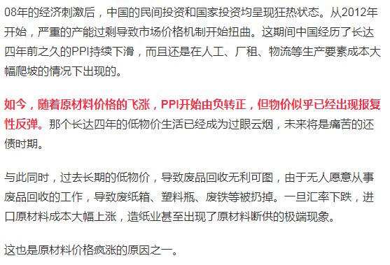 近几个月来,发轫于上游煤炭、钢铁、造纸等行业的涨价潮汹涌而下,在运输成本上涨和环境治理限产的推波助澜下,对工业制成品环节形成致命冲击。